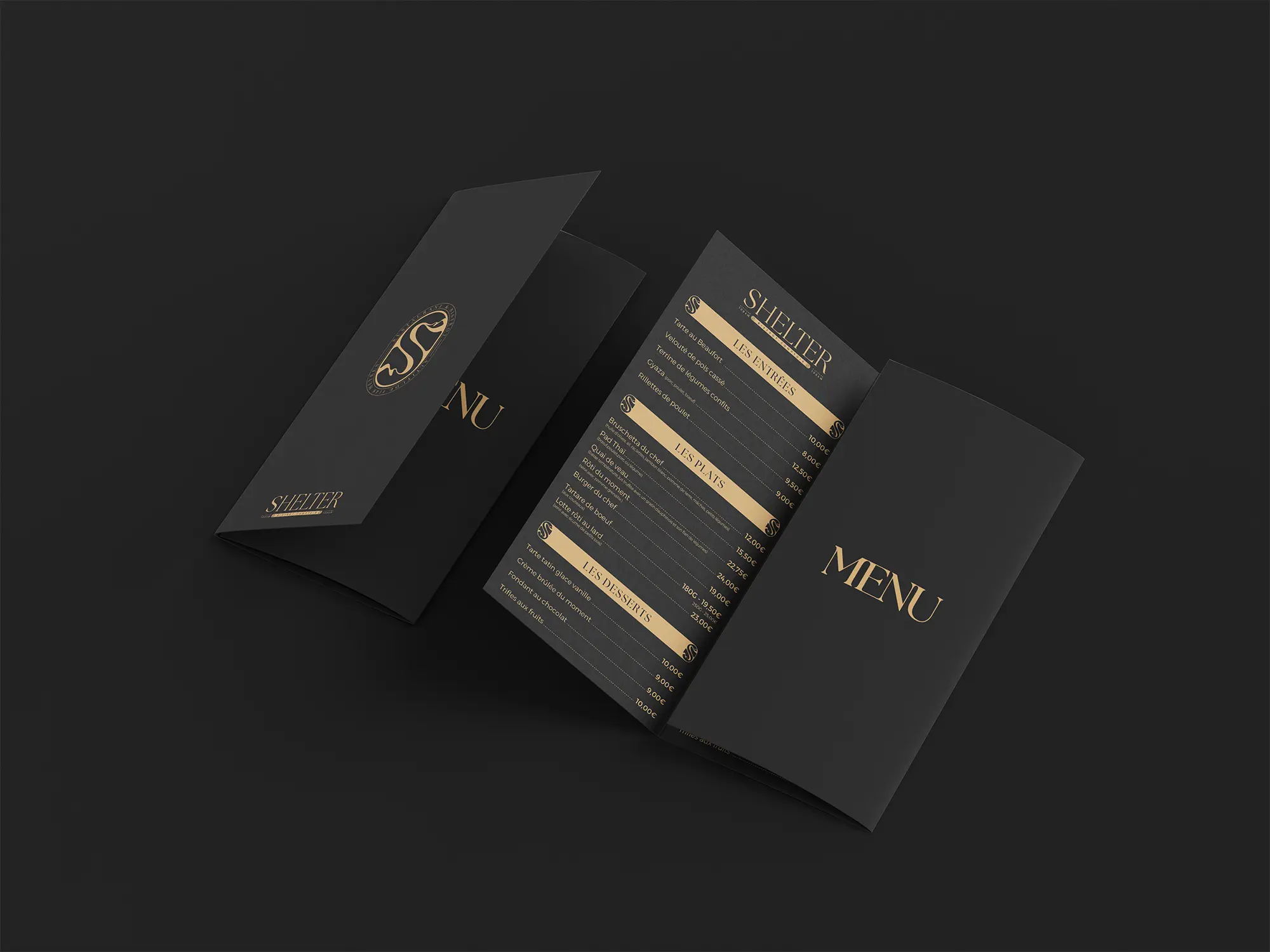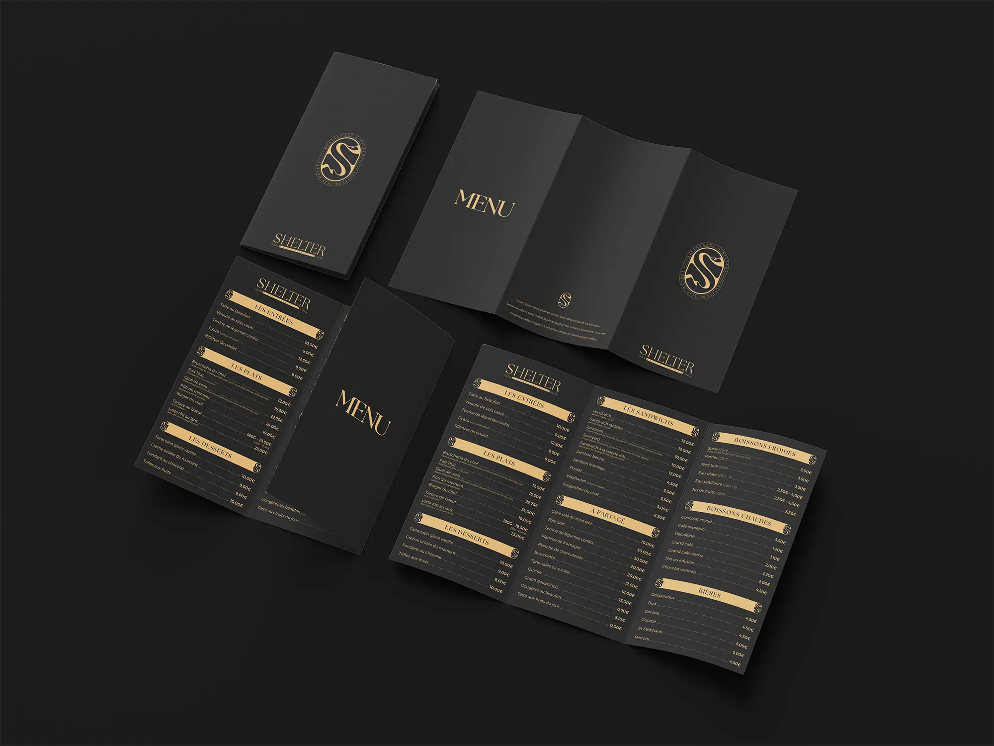 Design of a restaurant menu template, wine list, and loyalty card for L’Annexe SHELTER restaurant. As part of the venue’s upcoming opening, I was commissioned to create all the essential printed materials required for the restaurant’s smooth operation.
